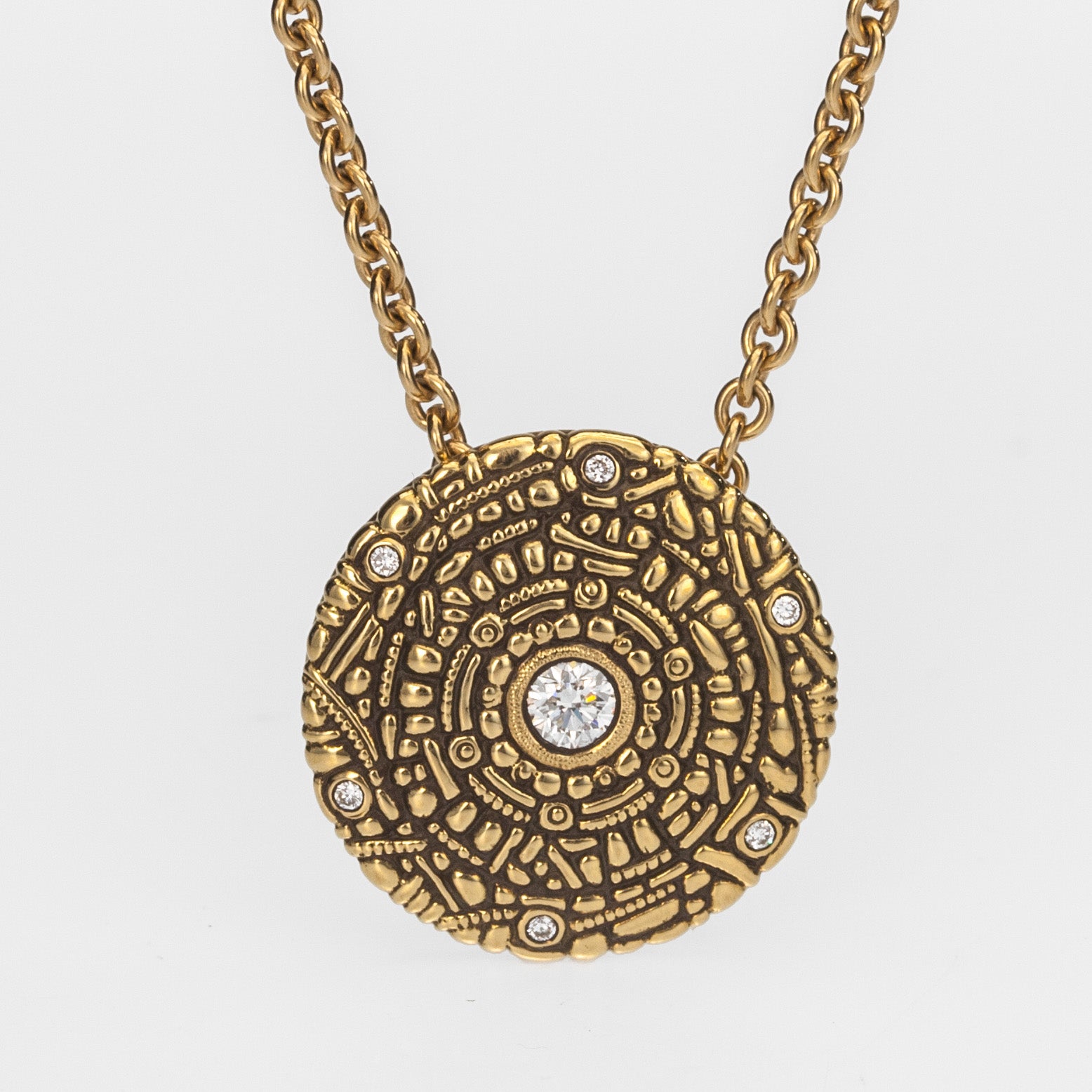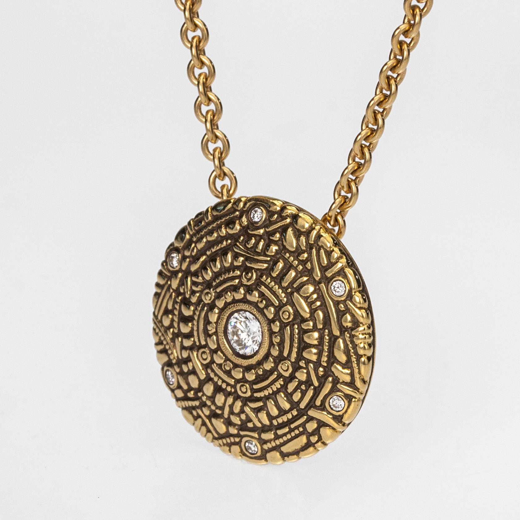 Pendant Style: Round Shield Shape Pendant with White Diamonds