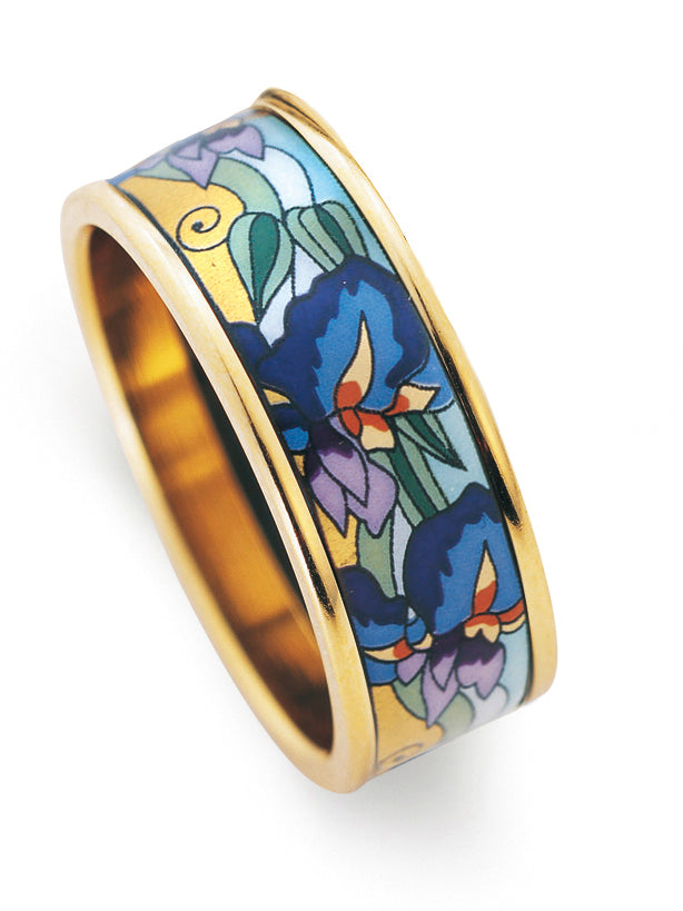 Ring - Diva Band with Claude Monet/Iris Plated in 24 Karat Yellow Gold