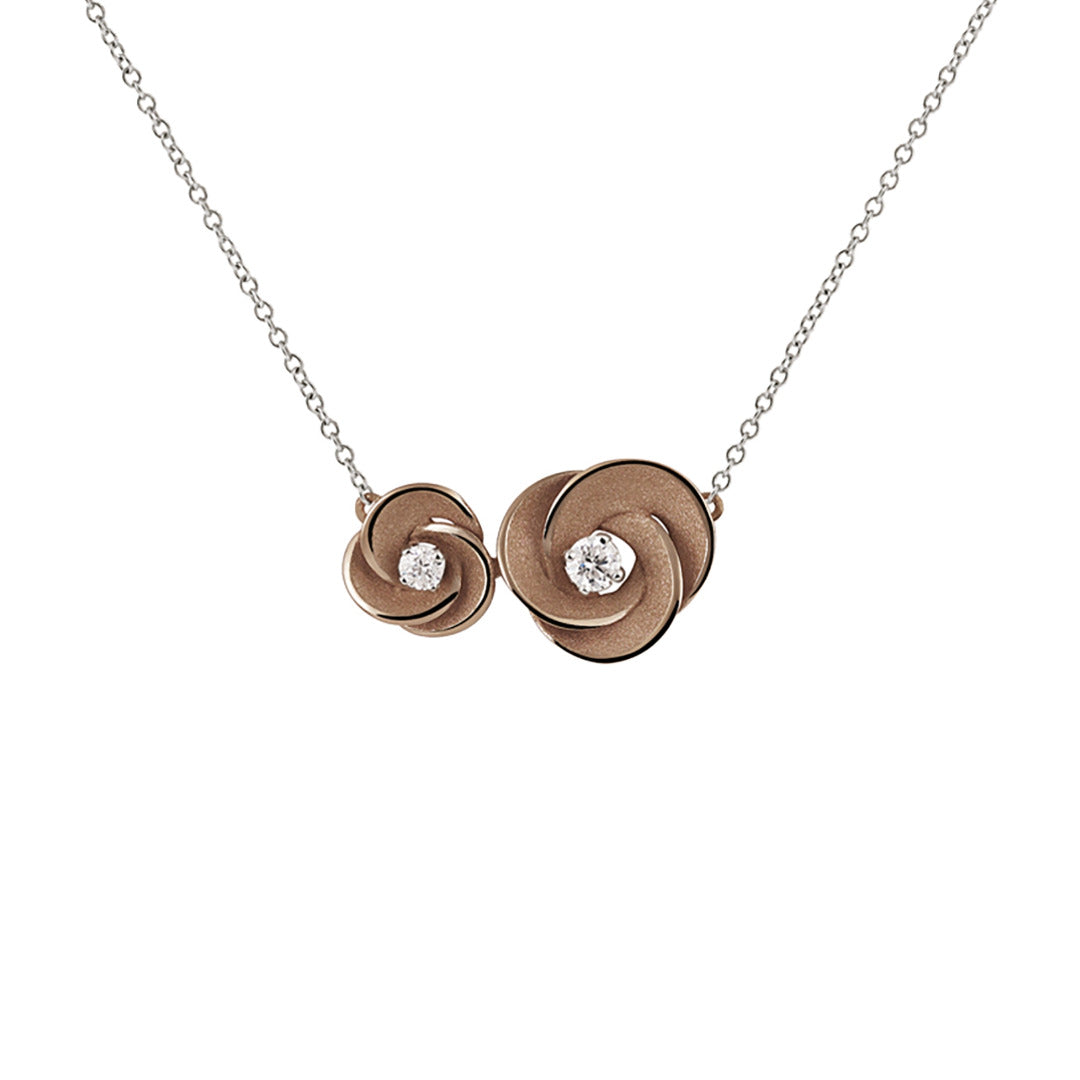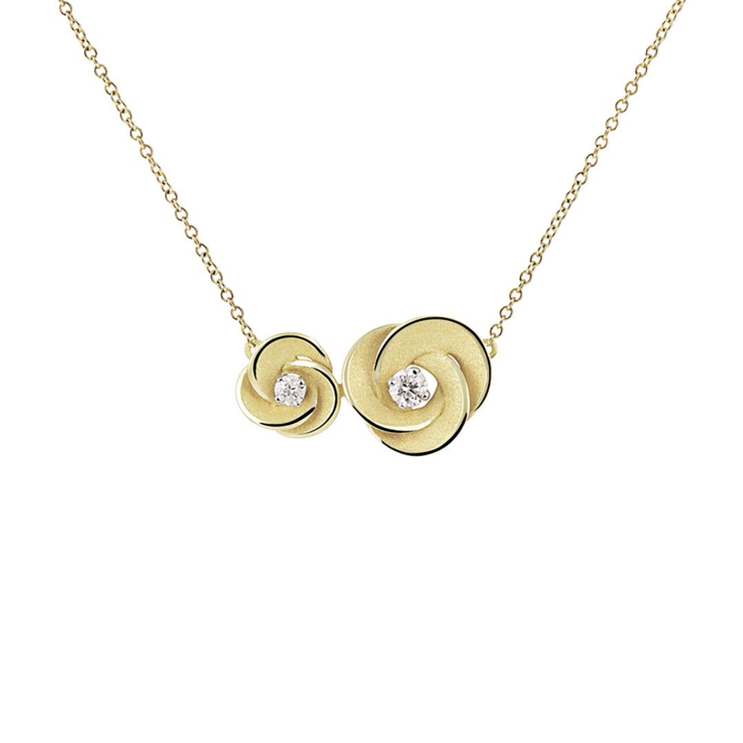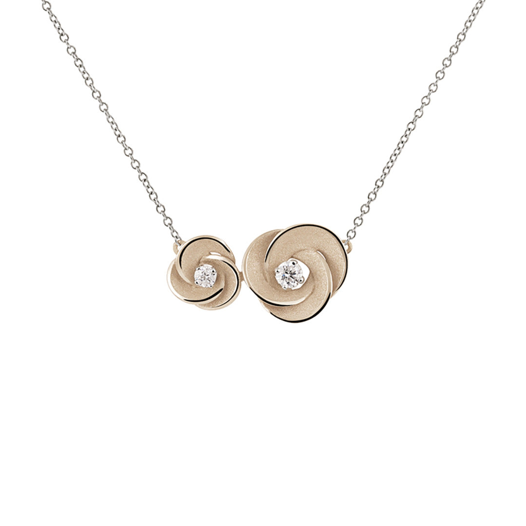 Regular price $4,880.00 Save $-4,880.00Delicate desert roses bloom in lustrous 18 Karat Gold, their petals captured in timeless elegance. Two diamond-adorned flowers rest gracefully along the collier—one commanding presence on the right, its companion nestled beside it. A refined statement piece from Florence, Italy that whispers of desert beauty and understated luxury, perfect for those who appreciate nature's geometry translated into precious metal.