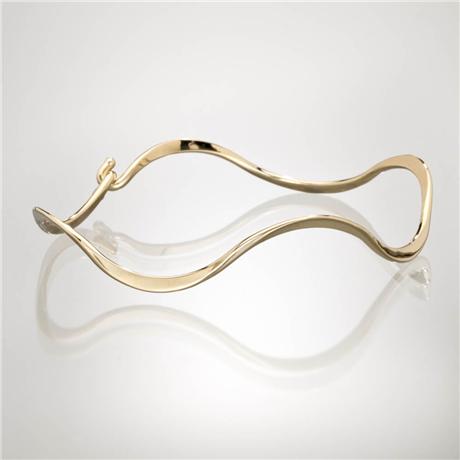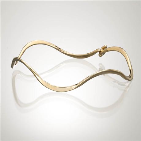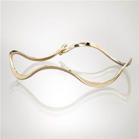 Regular price $1,165.00 Save $-1,165.00Curvy Bracelet in 14kt Yellow Gold - No Gemstone - Thin wire bangle that has a gentle wave design around the entire bracelet - Hook Clasp - Hand Forged