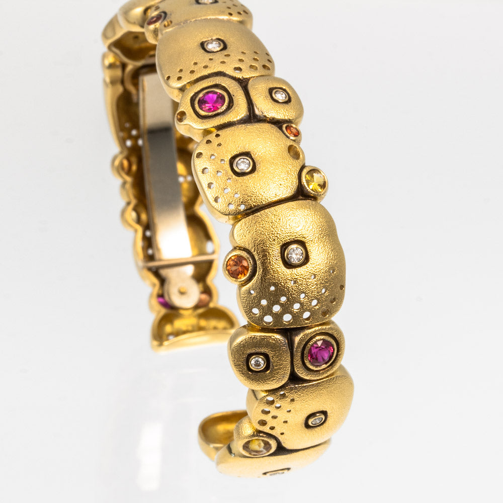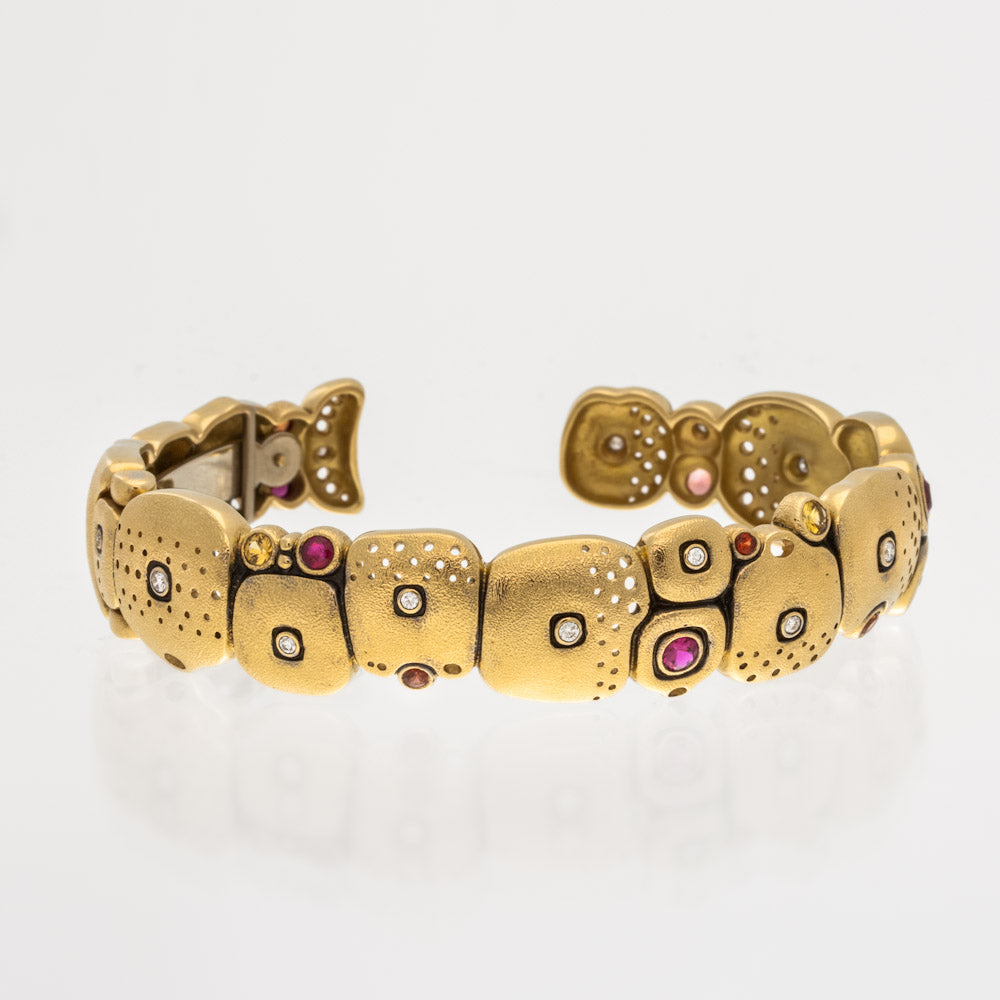 Bracelet - Cuff - Orchard Narrow - Sapphire-White Diamond - Orange-Pink Mix - 18KTYG