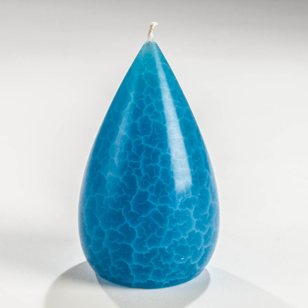Little Candle in Medium Turquoise - Short and wide teardrop shape taper candle made of Paraffin wax with a natural fiber wick
