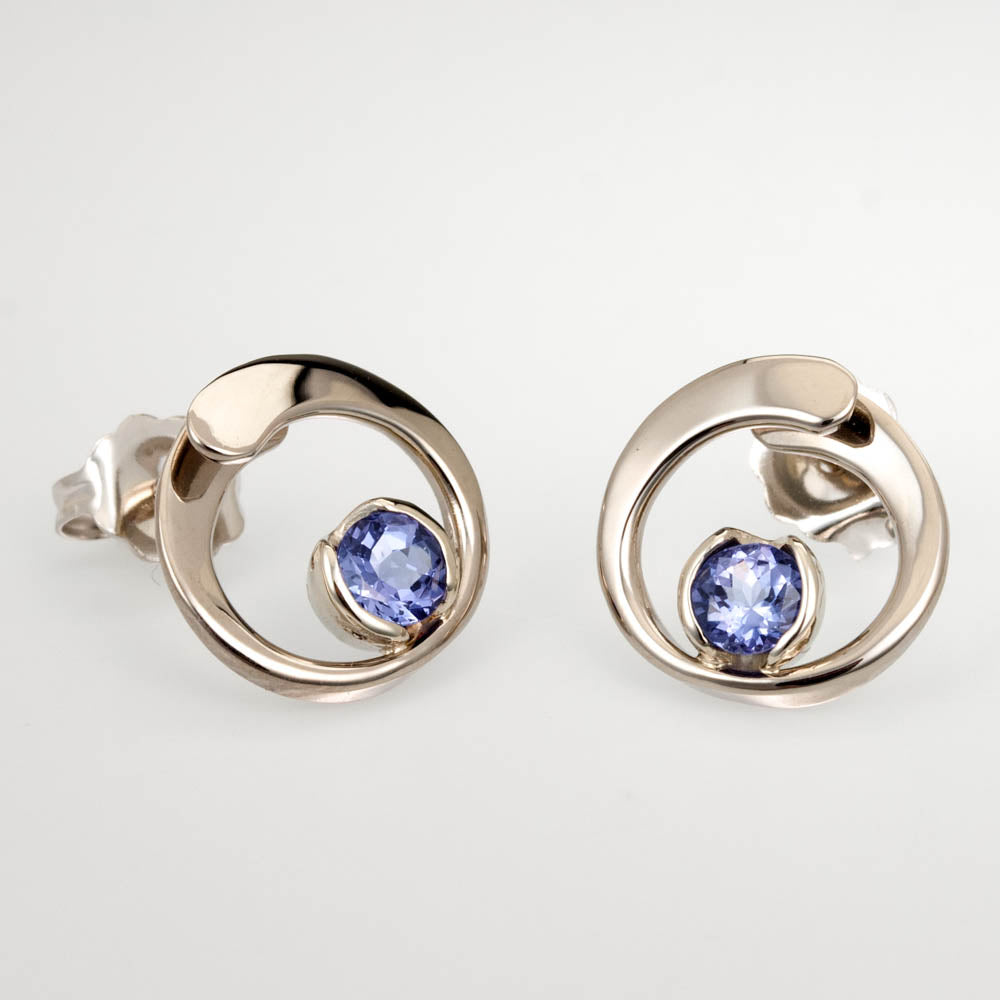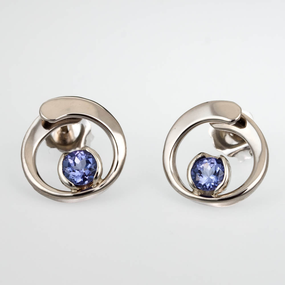 Earrings - Button - Circle - Tanzanite 4mm - 14KTWG