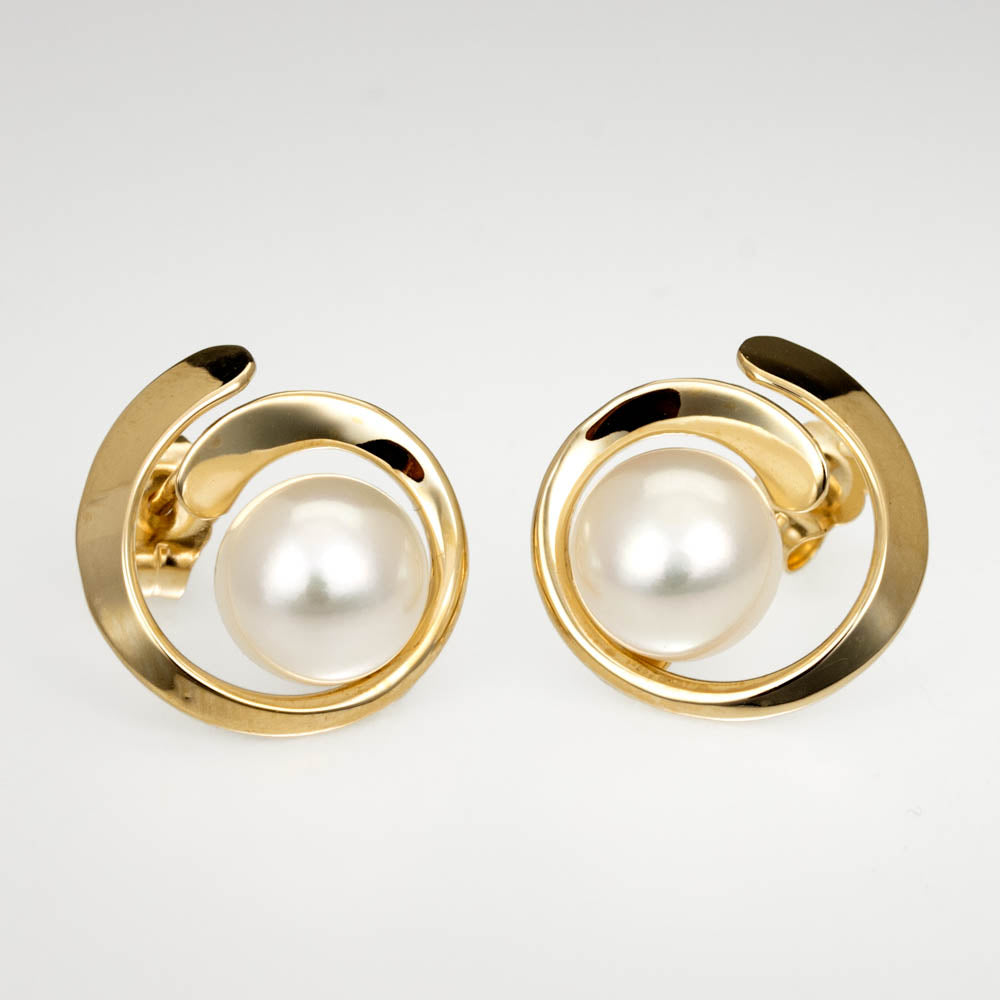 Earrings - Button - Overlap - White Pearl - 14KTYG