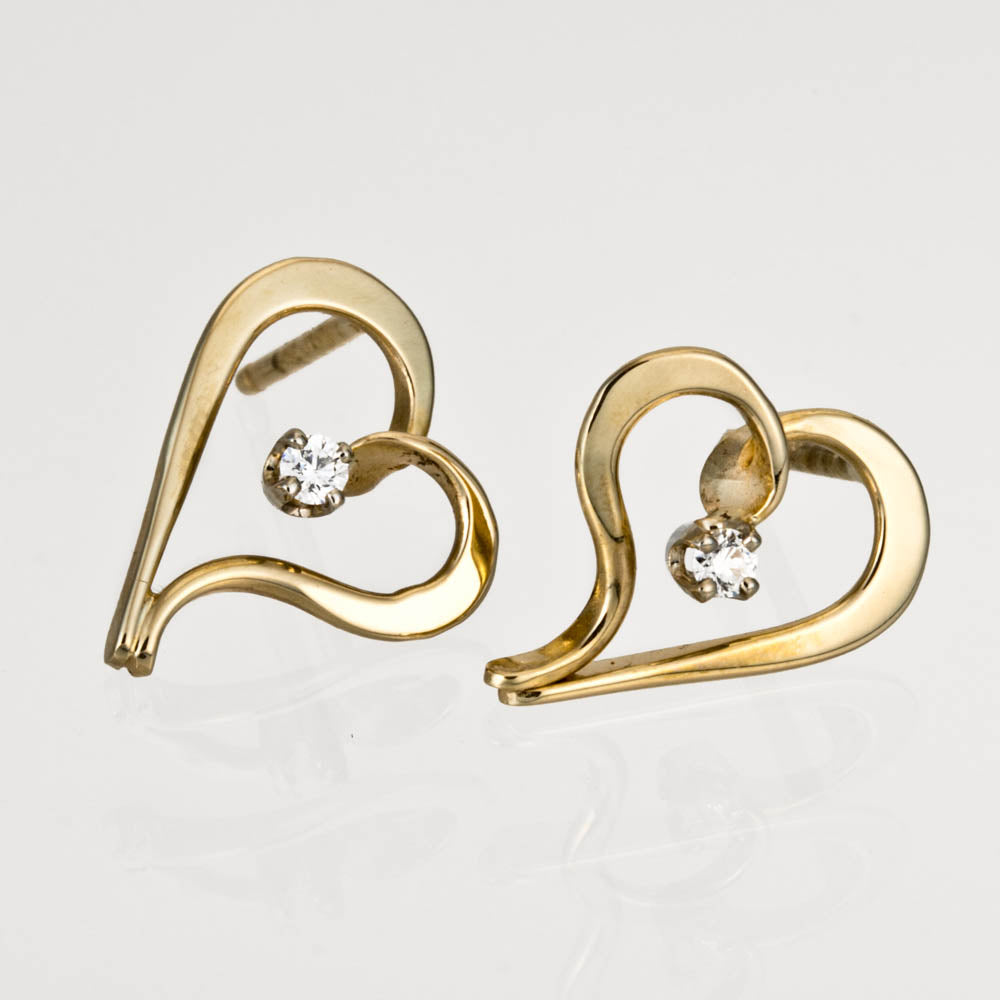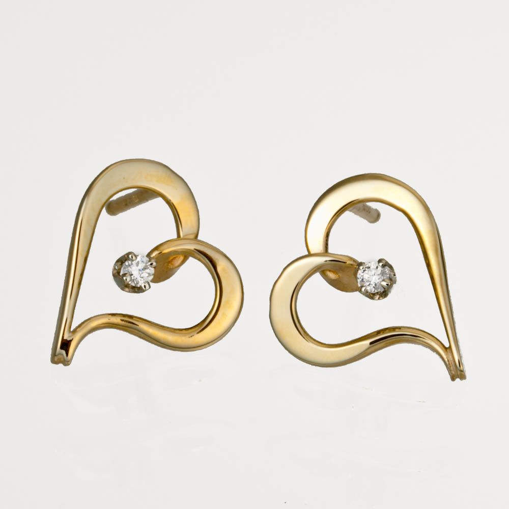 Earrings - Stud - Heart Small - Diamond 0.04cttw - 14KTYG