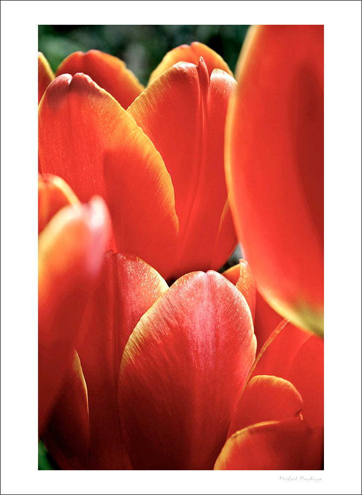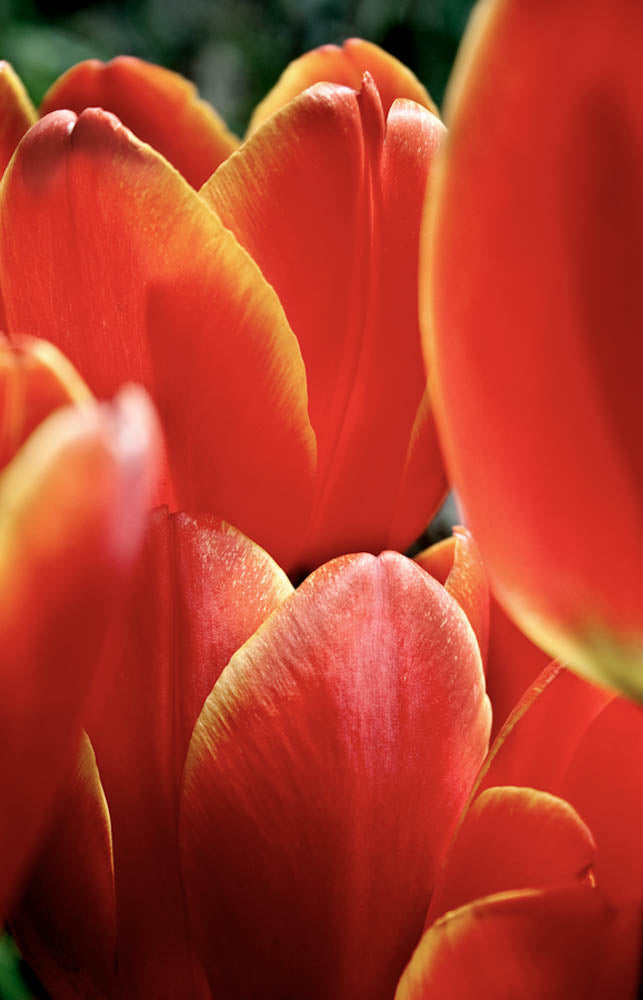 Red Tulips with the petals tinged yellow on the edges against natural background - Vertical orientation - Archival quality