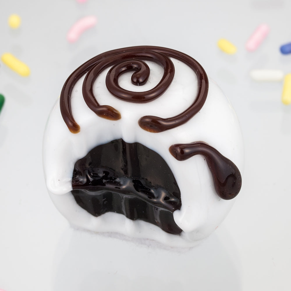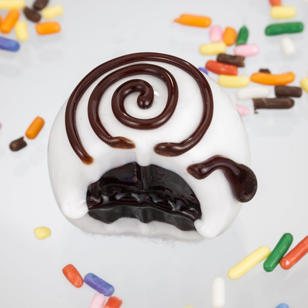 Regular price $54.00 Save $-54.00Bite - Ball Shape - Connoisseur Collection - Chocolate Spiral Rillette Bite - White Chocolate outside with Chocolate filling and decorated with a spiral of Chocolate icing - measures approximately 3.5cm tall by 3.5cm wide by 3cm deep