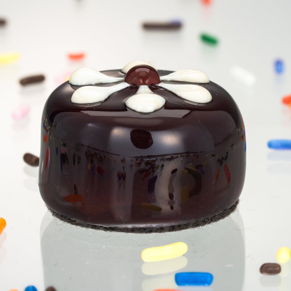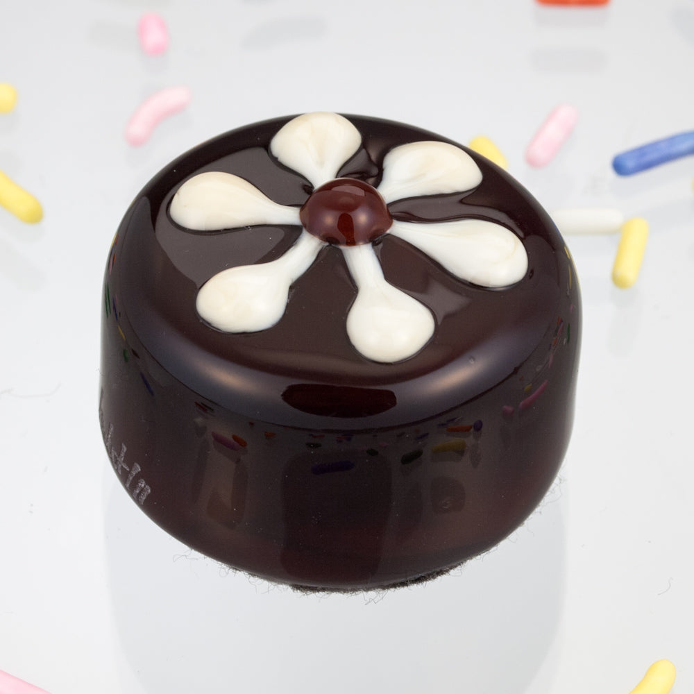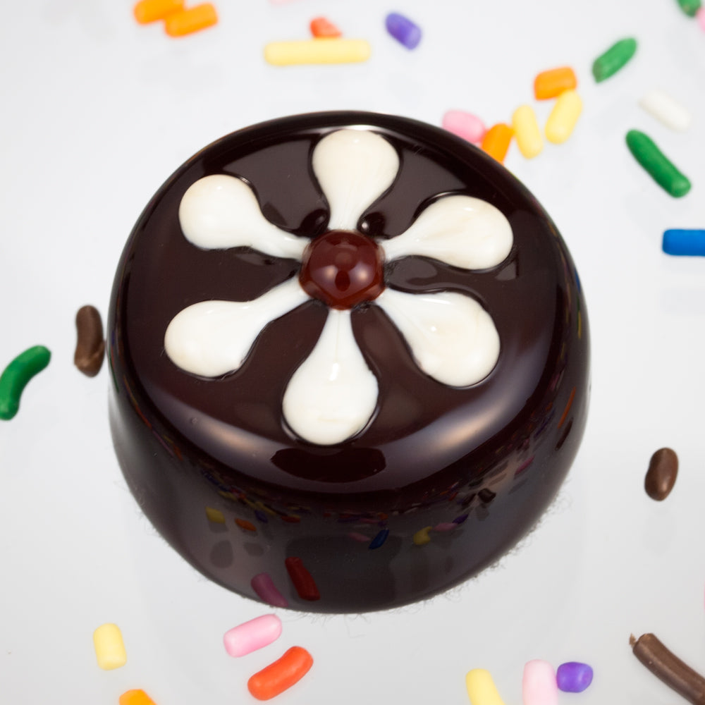 Regular price $50.00 Save $-50.00Chocolate - Round Shape - Hearts & Flowers Collection - Vanilla Pansy Aleraa Chocolate - Chocolate outside with flat Pansy flower made of Vanilla petals and a Caramel center dot - measures approximately 2.5cm tall by 3.5cm in diameter