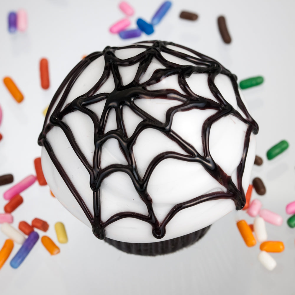 Regular price $65.00 Save $-65.00Cupcake Truffle - Halloween Collection - The Spider Web Cupcake - Chocolate with White Chocolate icing and decorated with a black licorice Spider web - measures approximately 4cm tall by 4cm in diameter