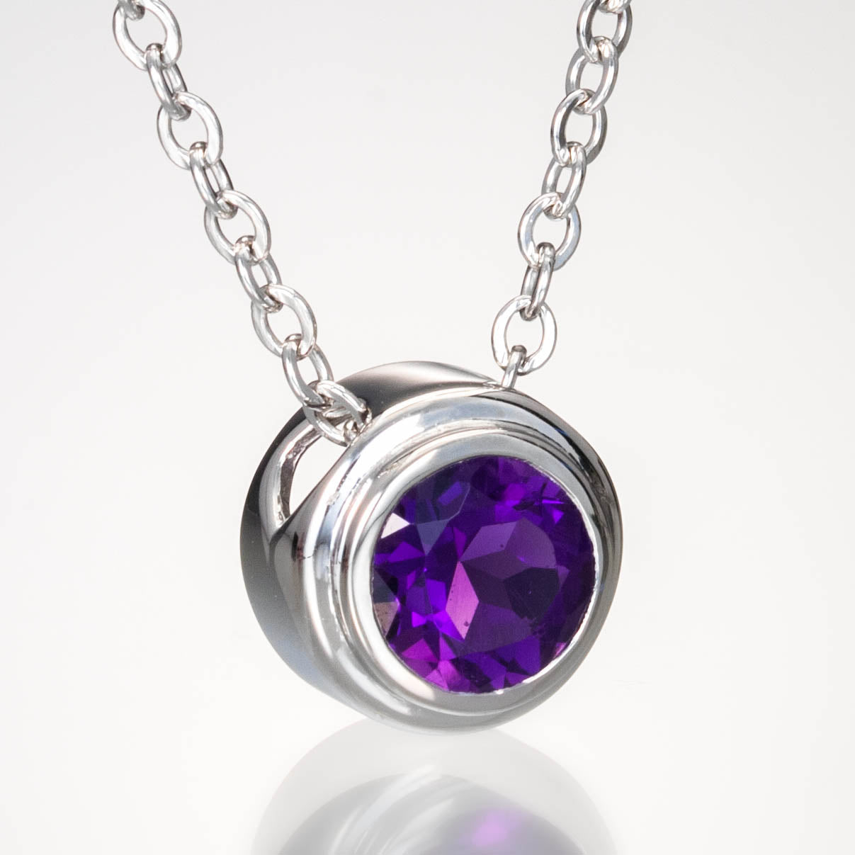 Necklace Style: Solitaire Amethyst Bezel Slide Pendant