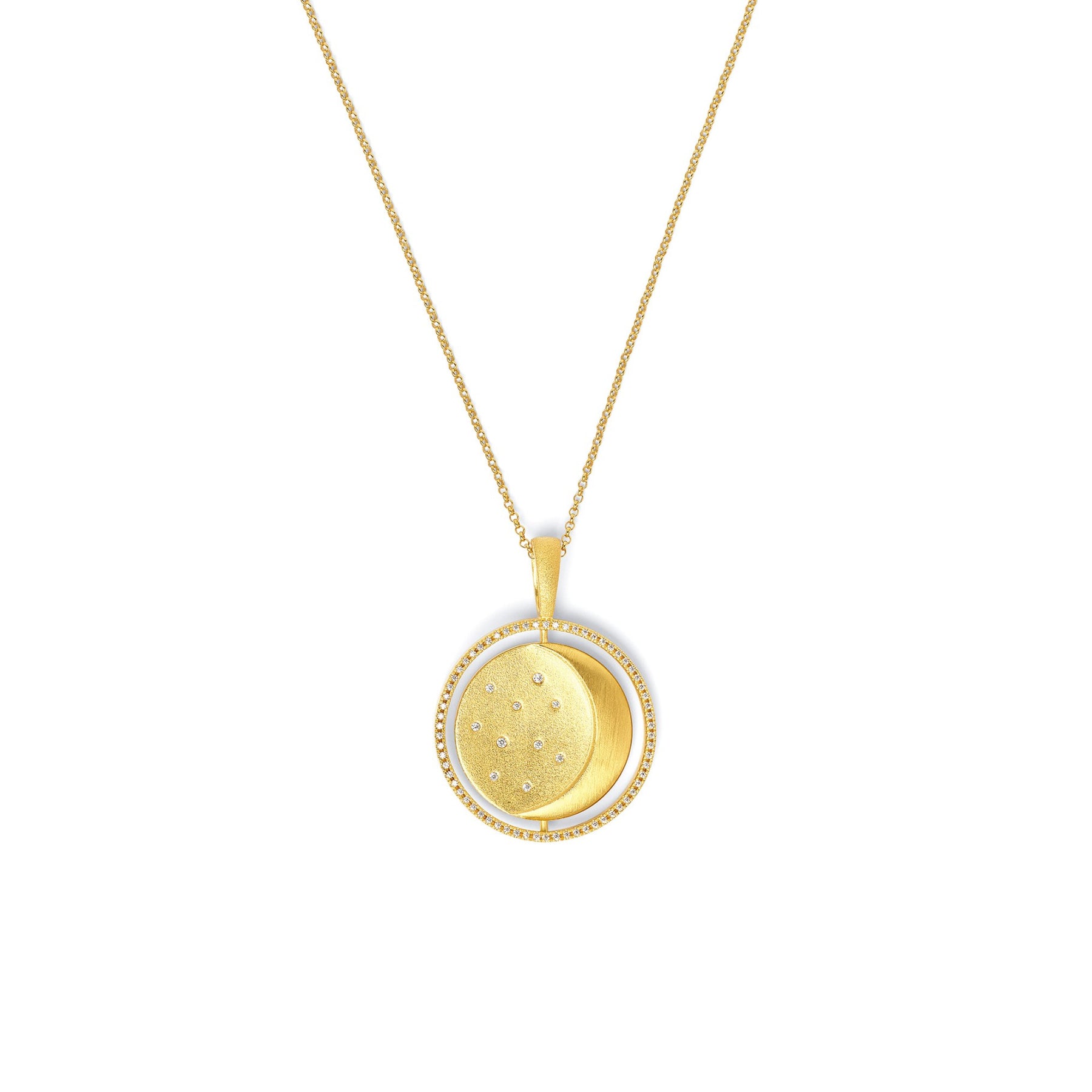 Suspended from a fine chain, the necklace is a testament to Bernd Wolf's craftsmanship and poetic vision. Whether worn as a celebration of nature's cycles or as a talisman of balance and renewal, this piece invites the wearer to carry the cosmos close to their heart. Perfect for those who find inspiration in the skies and seek elegance in the everyday.