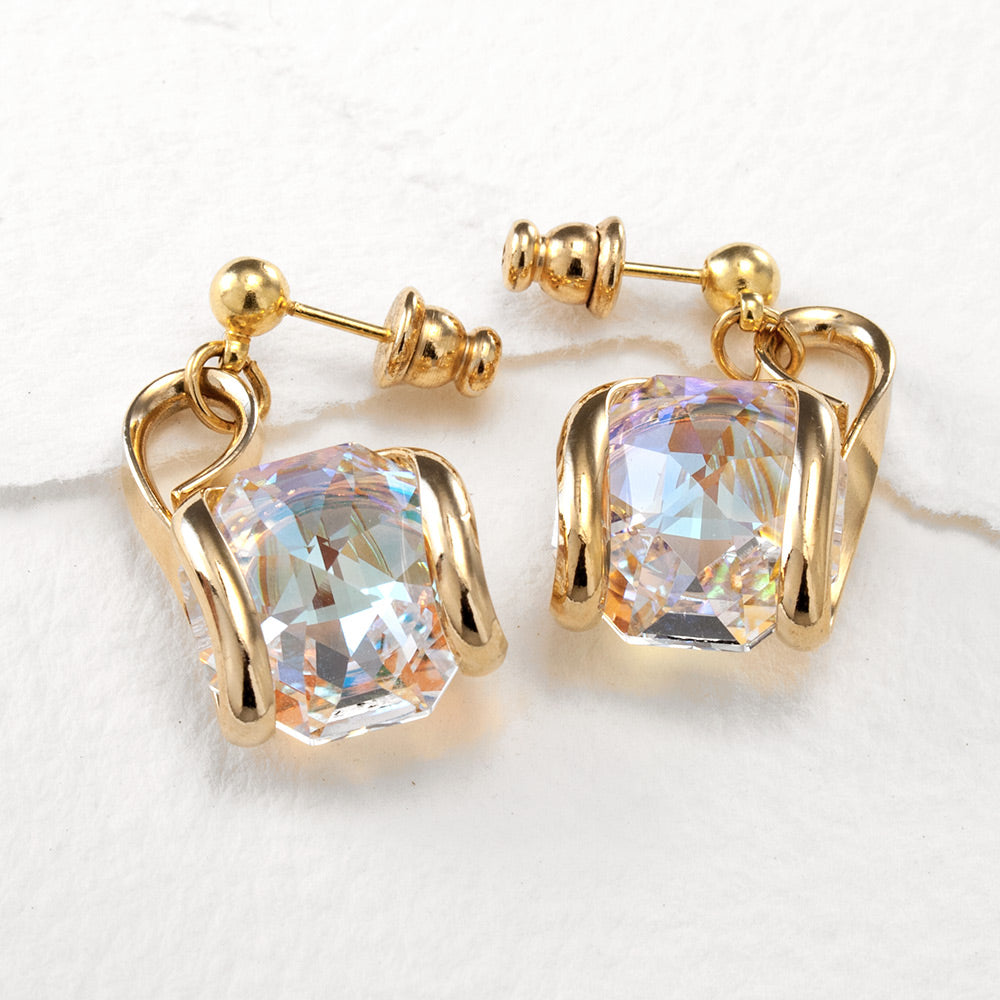 Regular price $215.00 Save $-215.00Pick your favorite PICCOLO earrings. Petite perfection. The best things come in small packages… especially the tiniest of Monique’s earrings – the PICCOLO earring. A Swarovski crystal octagon is hand wrapped in yellow gold plated wire to highlight the ethereal beauty of the crystal. The metal securely embraces each crystal in these short PICCOLO dangle earrings that have a post and nut backing.