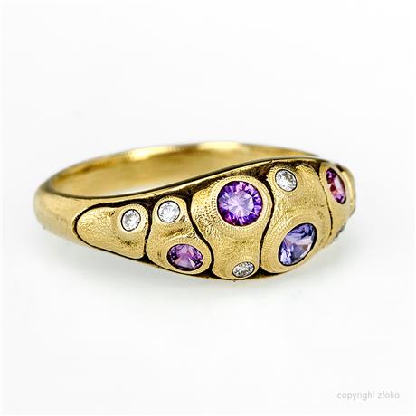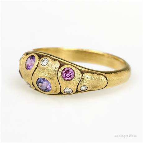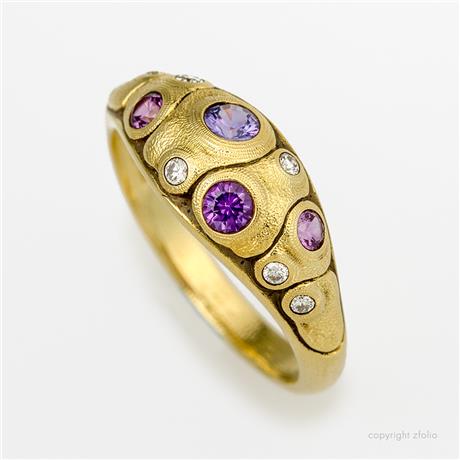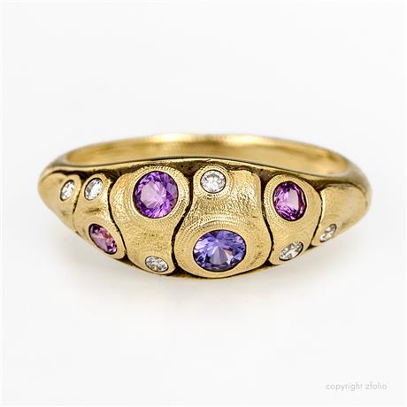 Ring - Dome Band - Anna II - Sapphire-White Diamond - Purple Mix - 18KTYG