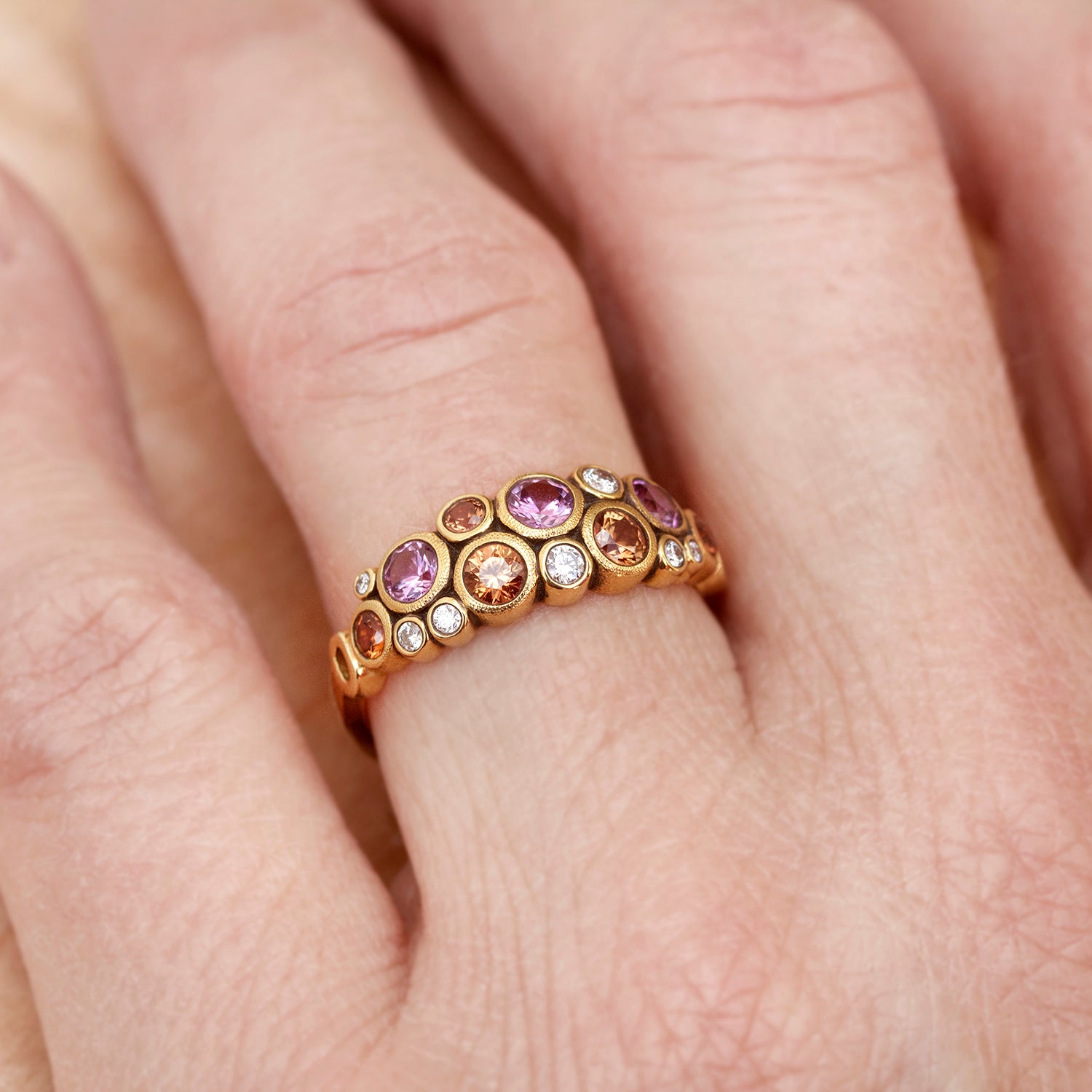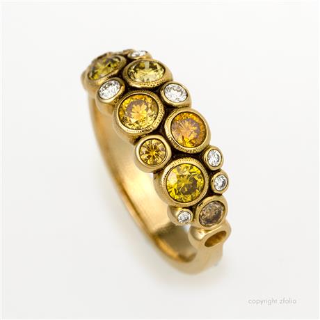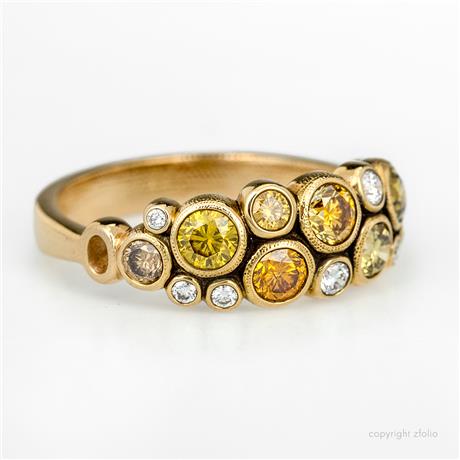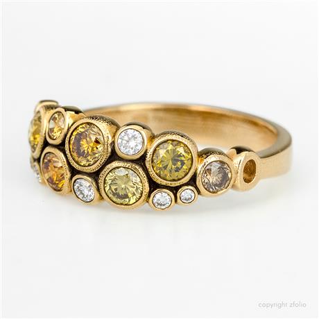Number of Natural Color Diamonds: 8 Color Palette: Earth Tones Carat Weight: 0.93 carat total weight Diamond Shape: Round Cut: Brilliant Cut Setting: Bezel Set