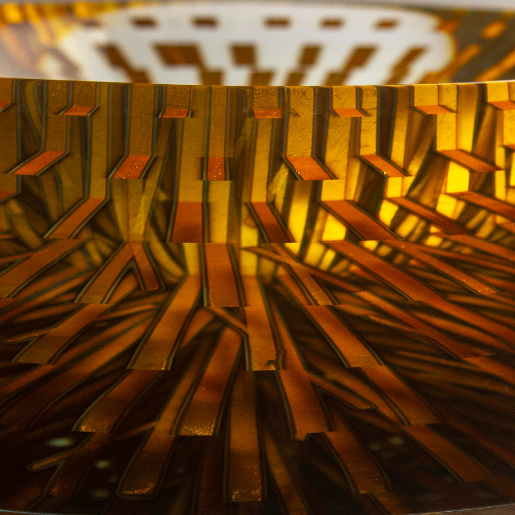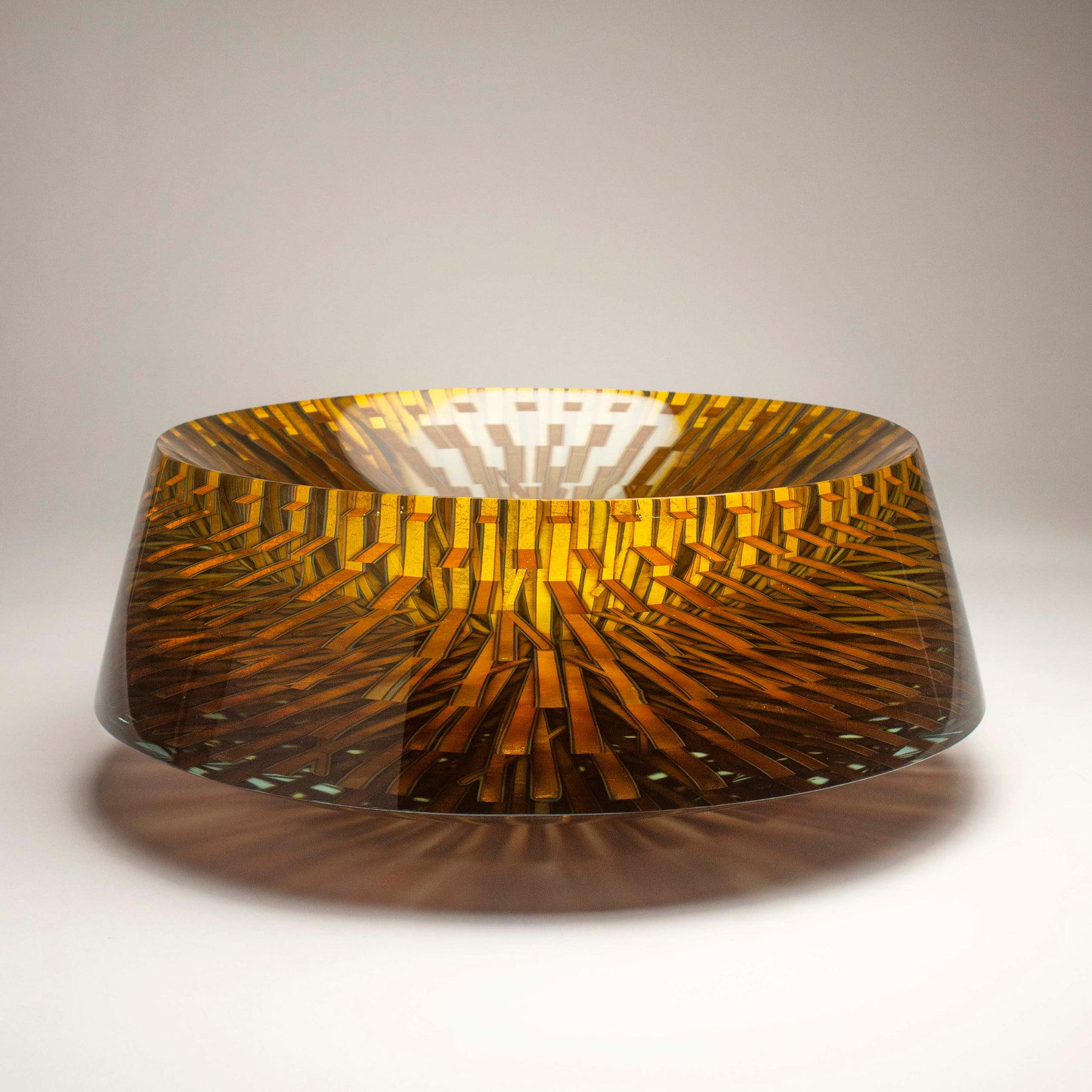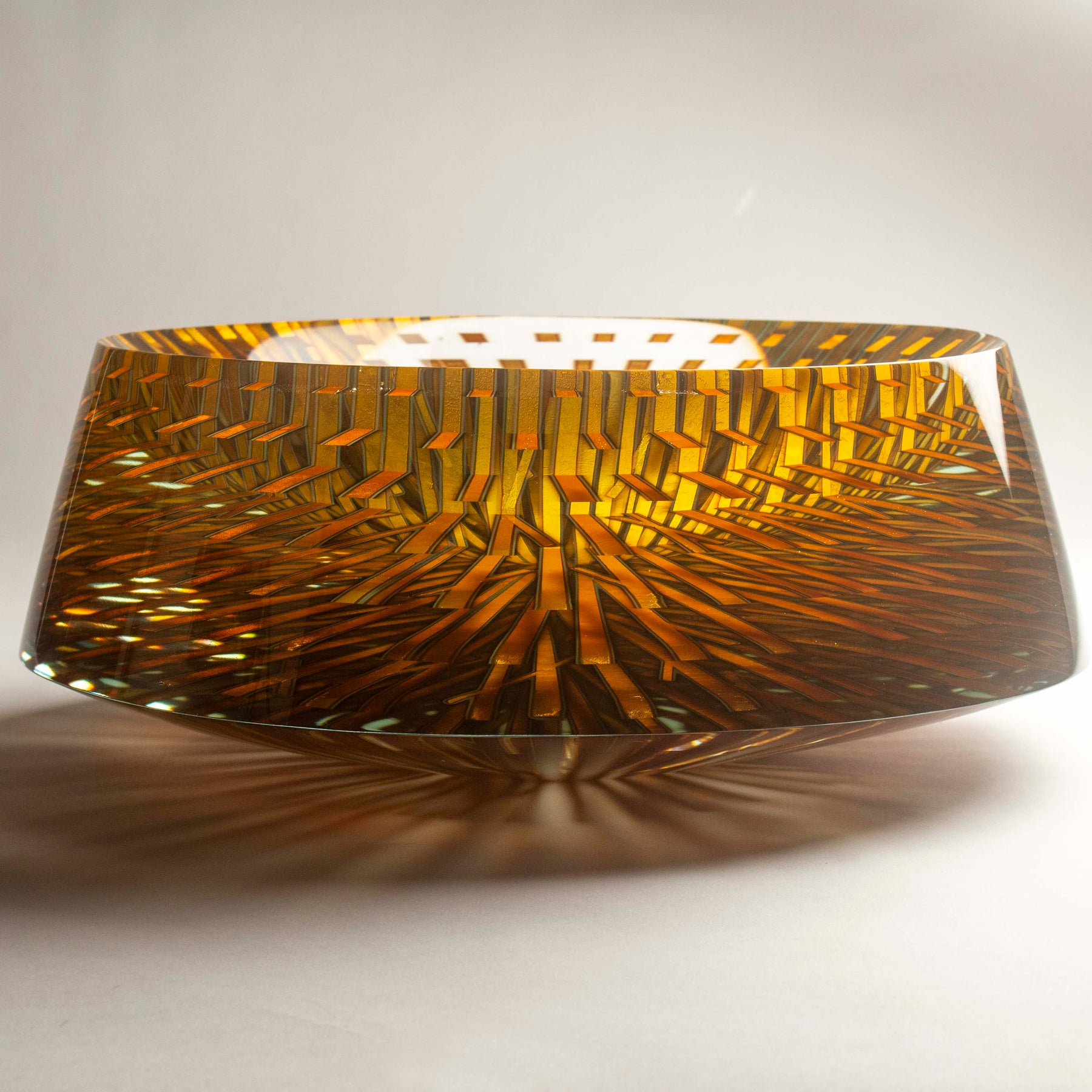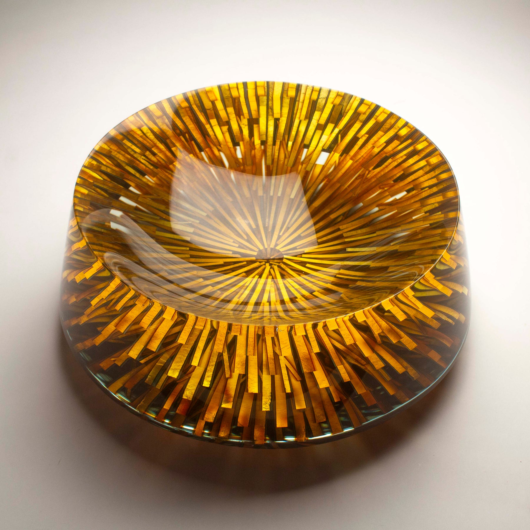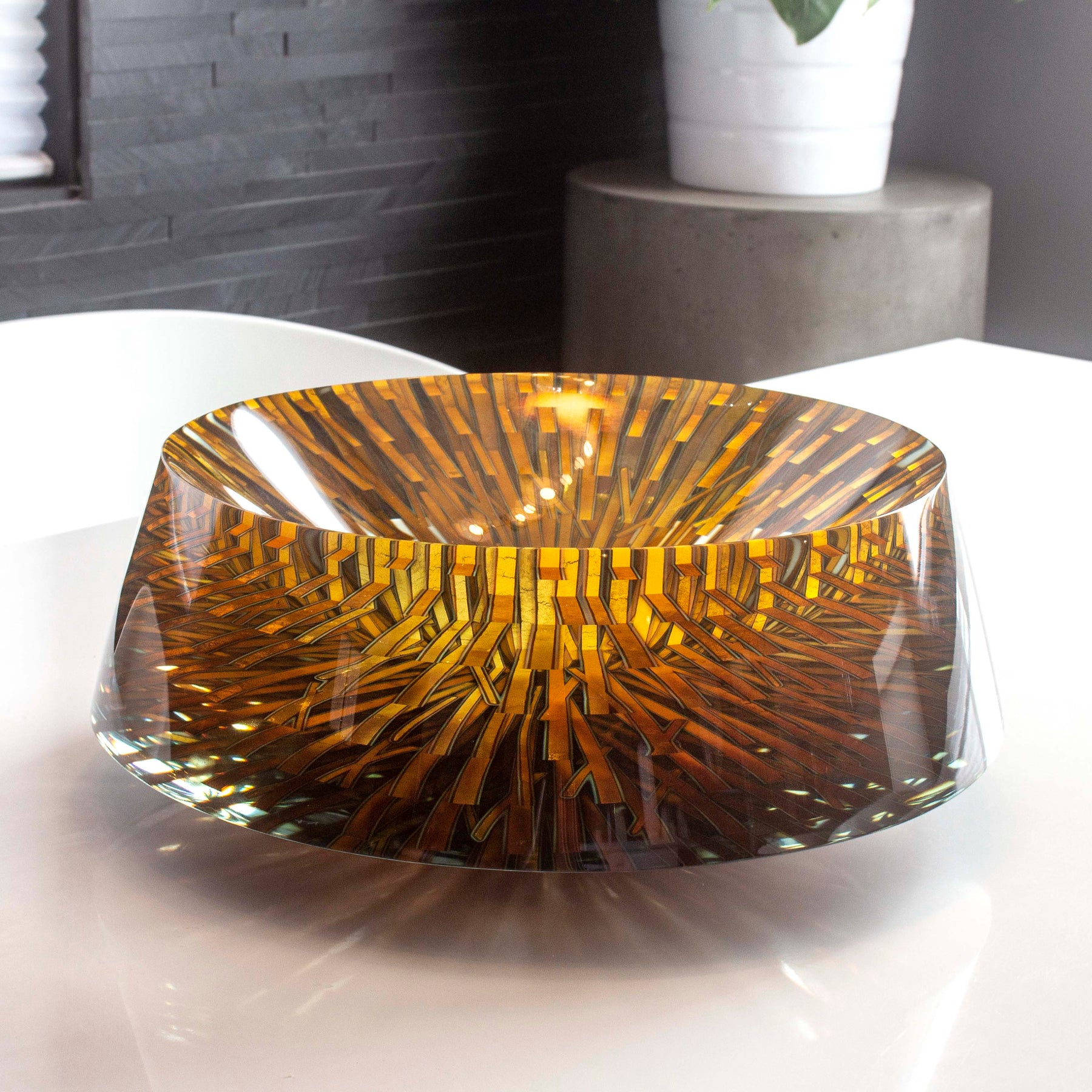 Regular price $13,900.00 Save $-13,900.00Bowl shaped sculpture with tapered sides - Silver oxidized yellow gold color strips in layers - 14 inches in diameter by 5.6 inches tall