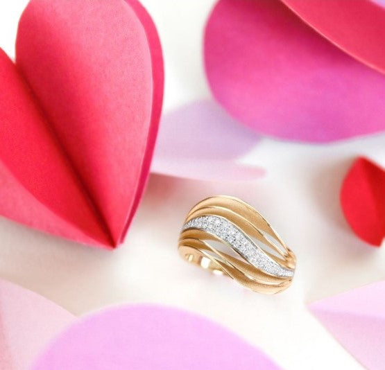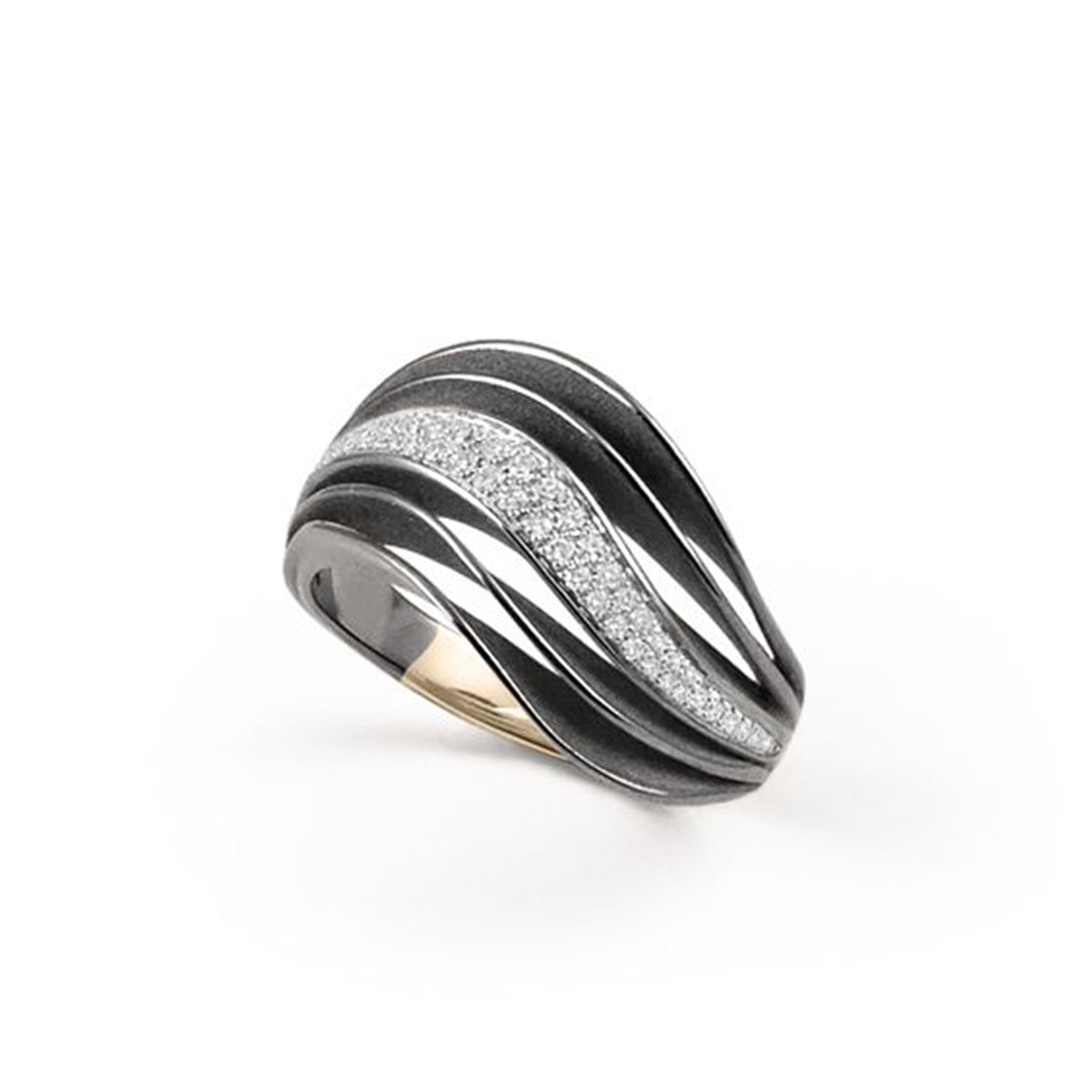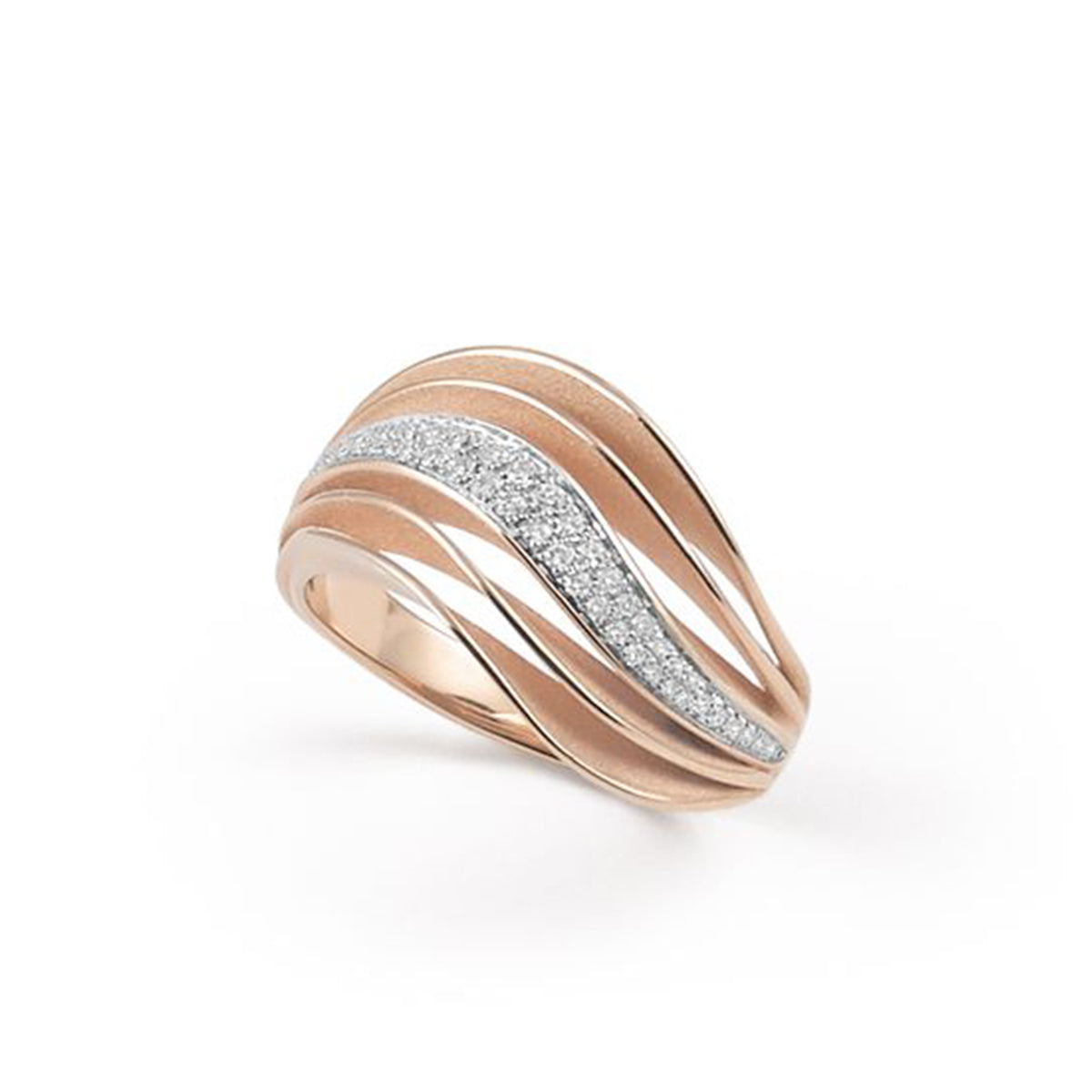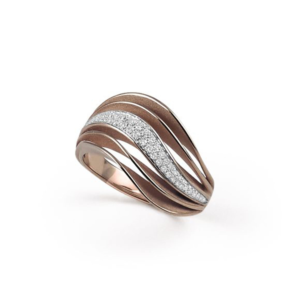 Ring Style: Sand Dune Inspired Six Layer Gold & Diamond Pave Cocktail Ring