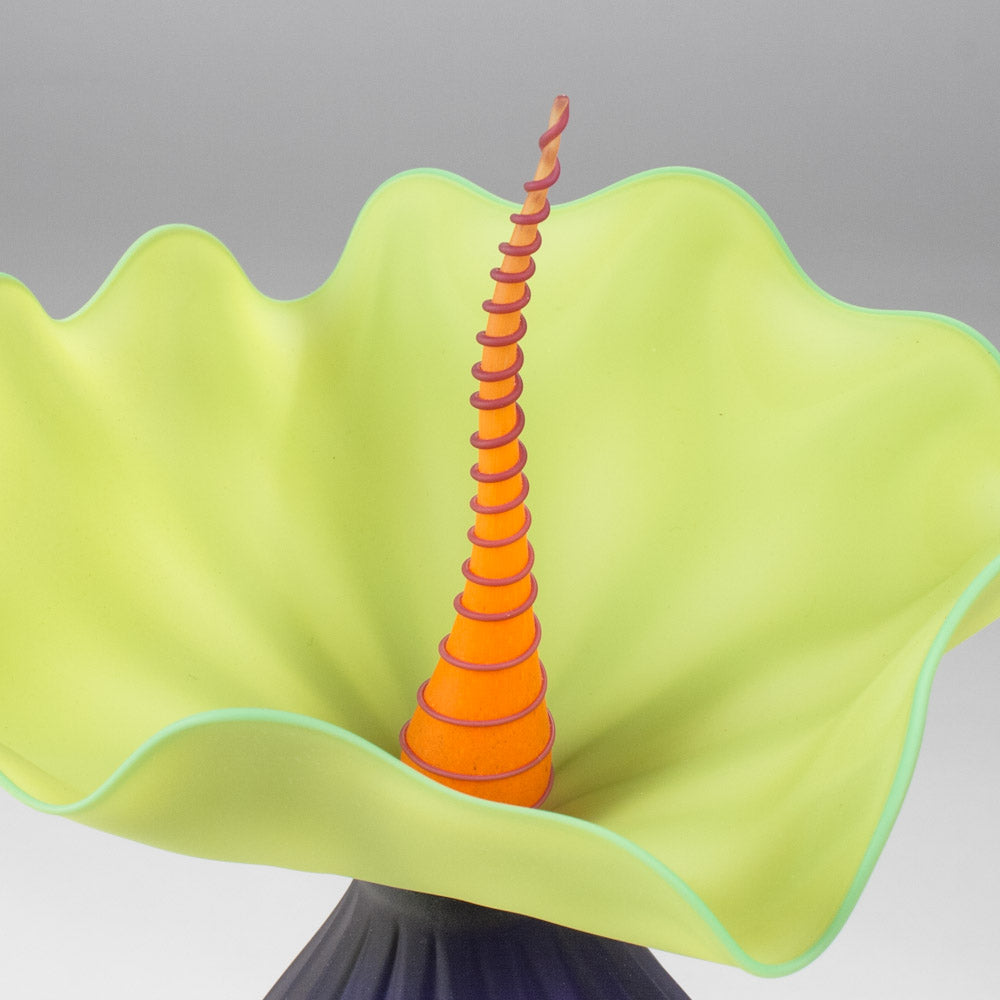 Every enchanted forest is bursting with Kliss BobTanical sculptures - or should be. Bright, sweeping organic colors, paper thin flower like ruffles and spiral top all blend to form a stunning expression of happiness and joy. Welcome to the whimsical world of Kliss Glass, where color and texture combine to fill your home or office with lighthearted enchantment.