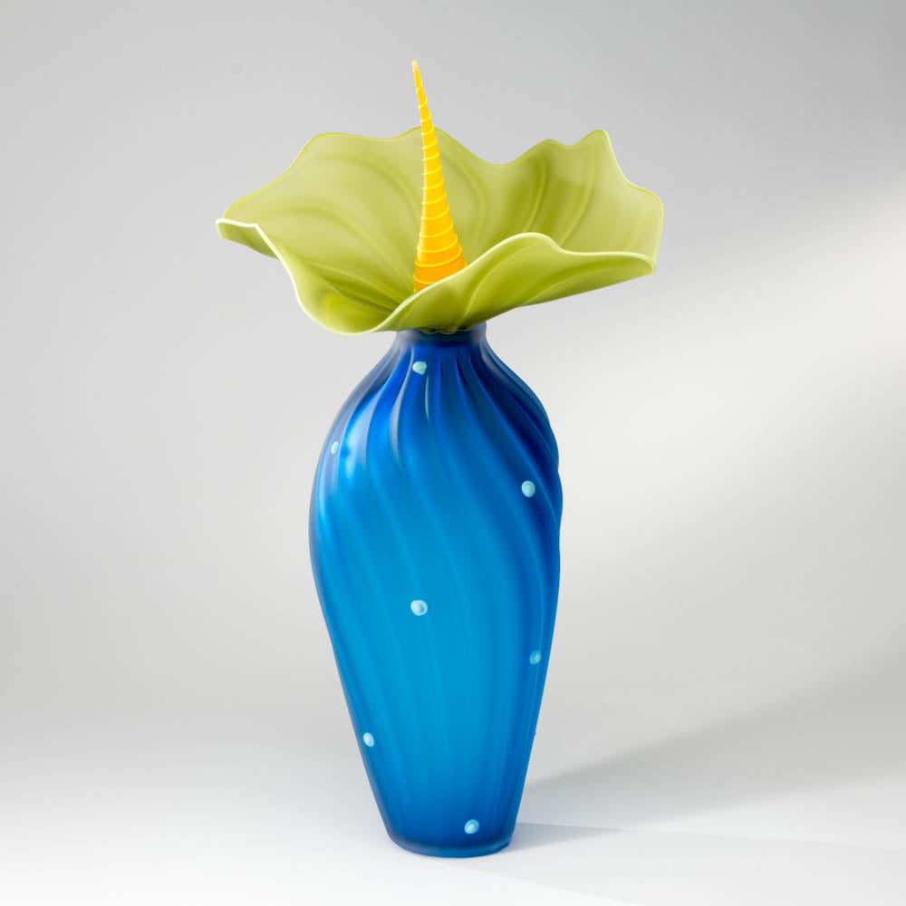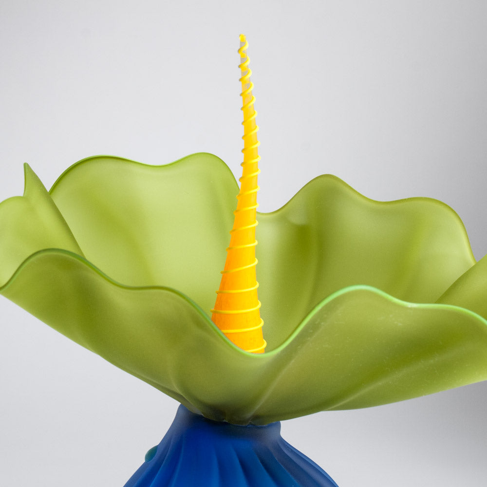 Every enchanted forest is bursting with Kliss BobTanical sculptures - or should be. Bright, sweeping organic colors, paper thin flower like ruffles and spiral top all blend to form a stunning expression of happiness and joy. Welcome to the whimsical world of Kliss Glass, where color and texture combine to fill your home or office with lighthearted enchantment.